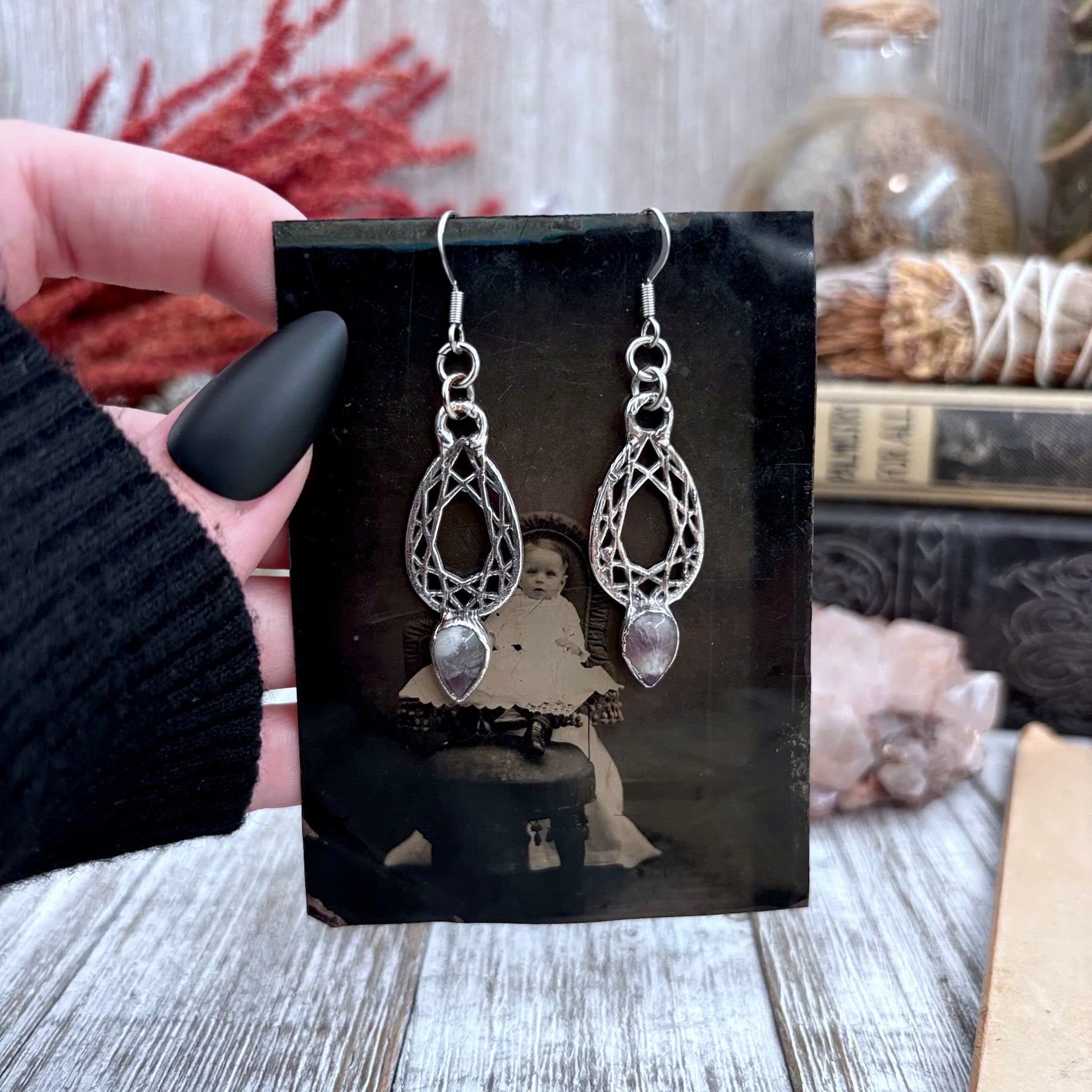 Amethyst Fine Silver Crystal Drop Earrings / Long Dangle Witchy Earrings