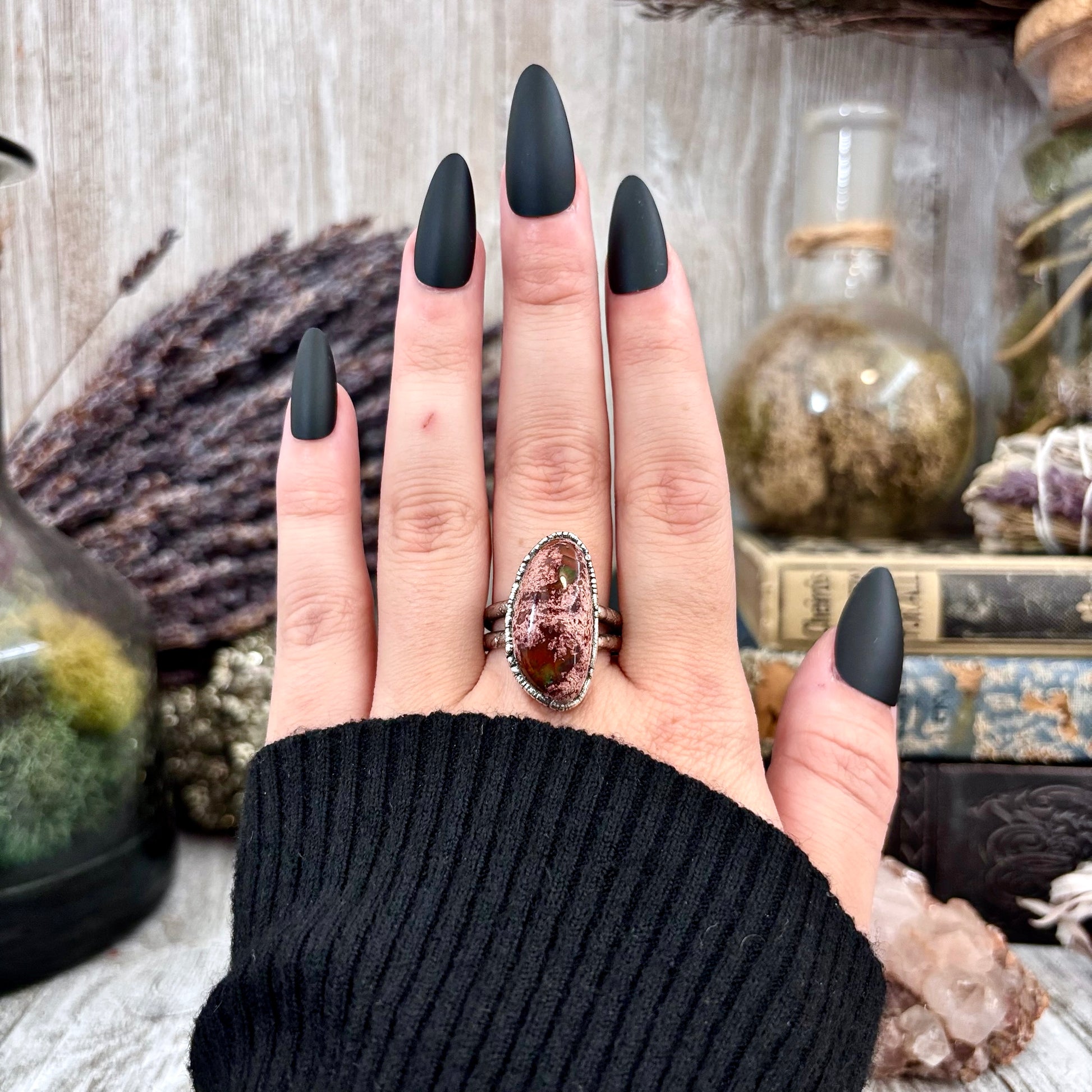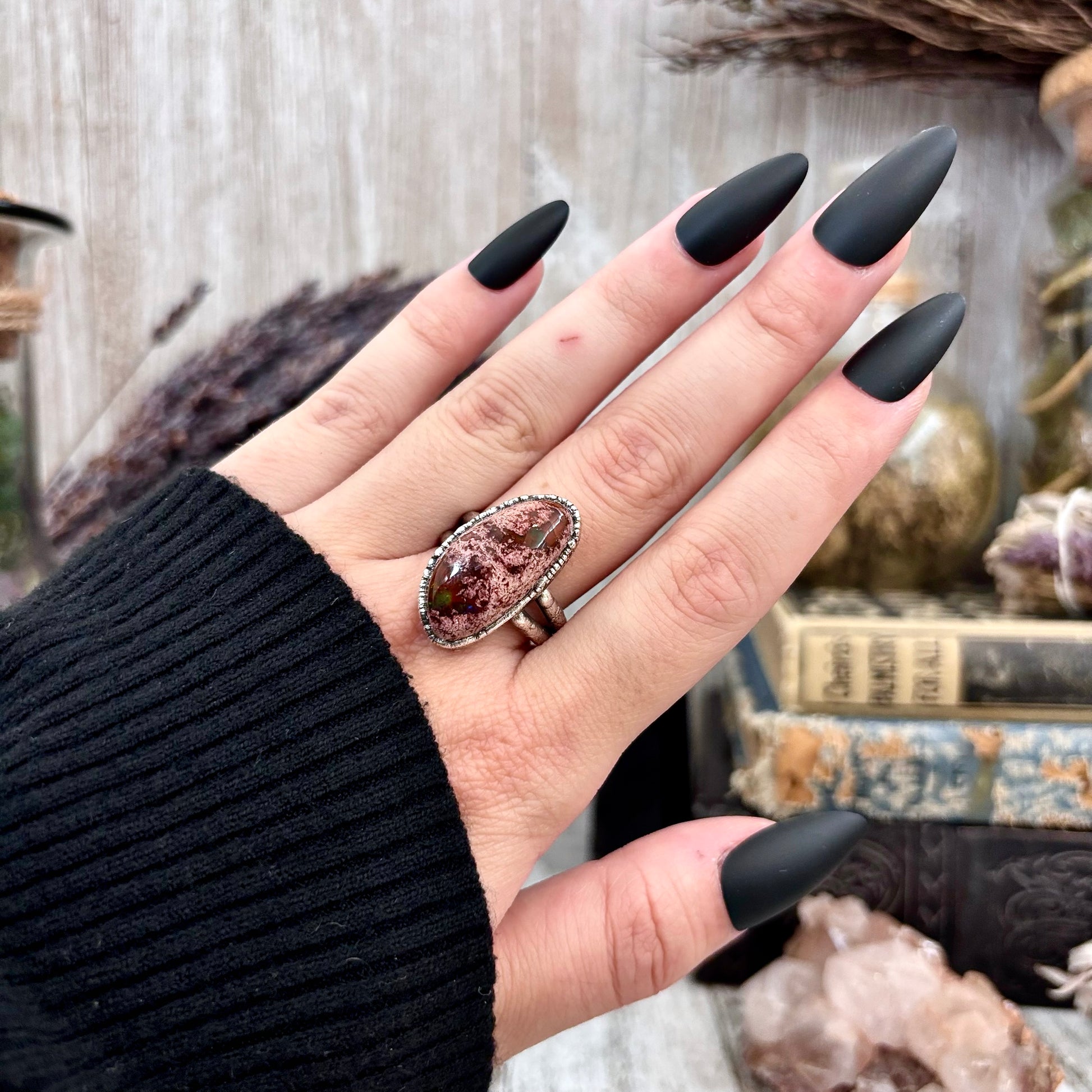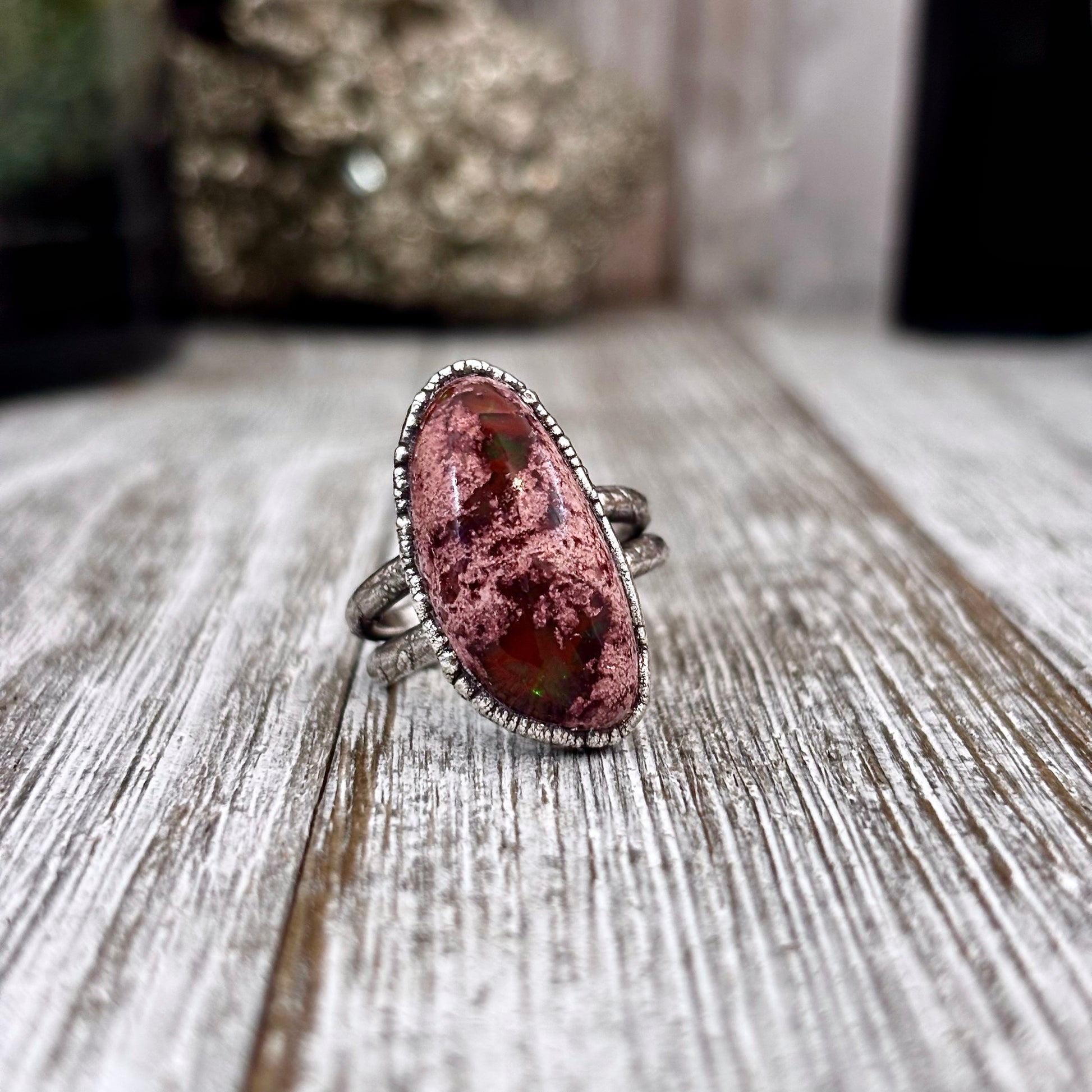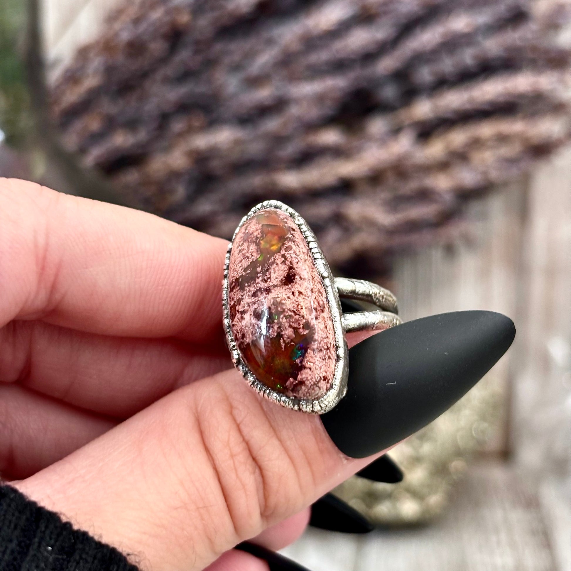 Fire Opal Crystal Ring Set in Fine Silver Size 9 / Foxlark Collection - One of a Kind