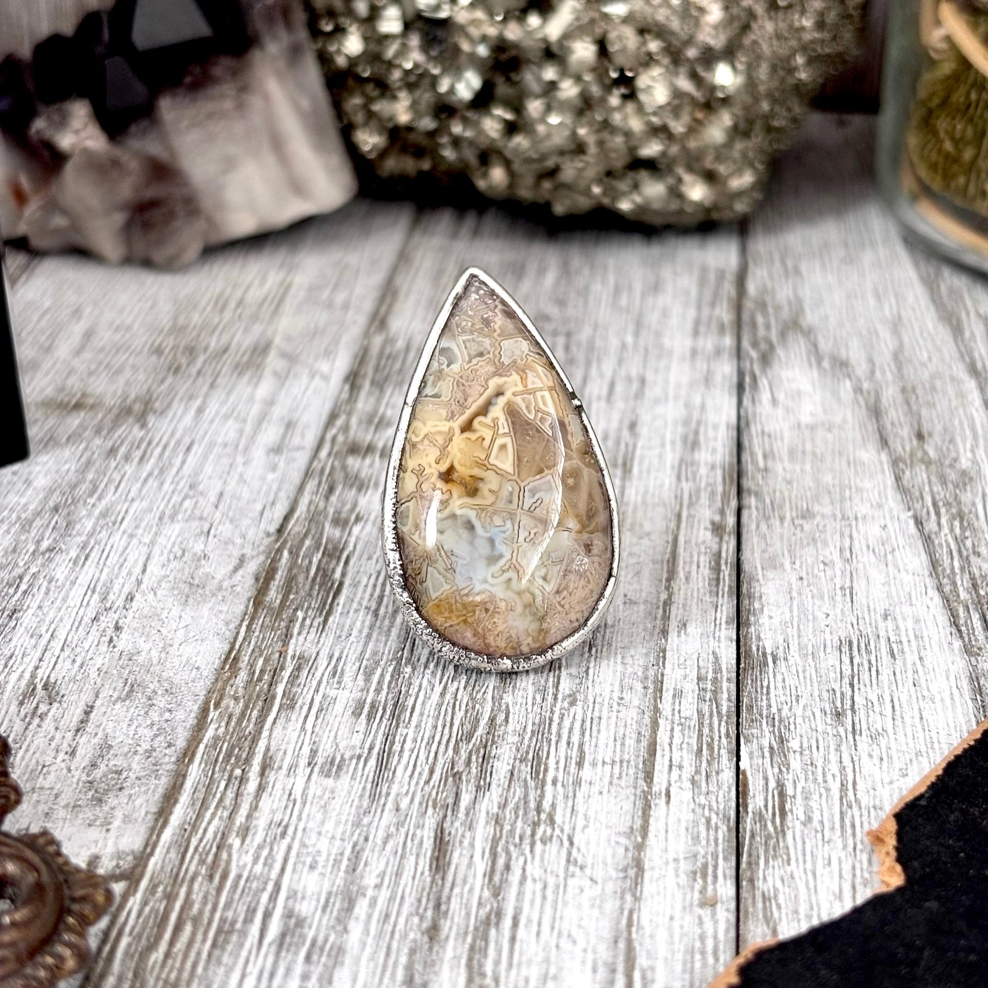 Fossilized Coral Crystal Ring Fine Silver Size 10 / Foxlark Collection - One of a Kind