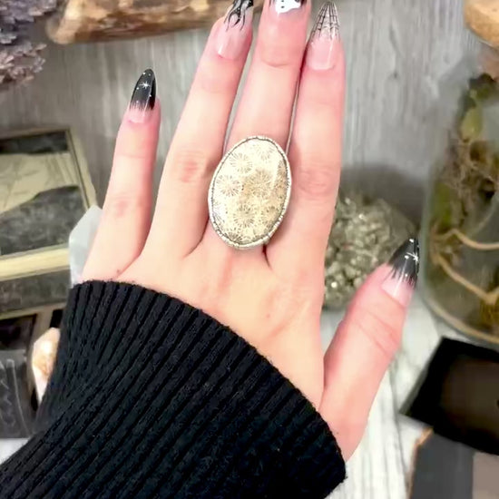 Fossilized Coral Crystal Ring Fine Silver Size 9 / Foxlark Collection - One of a Kind