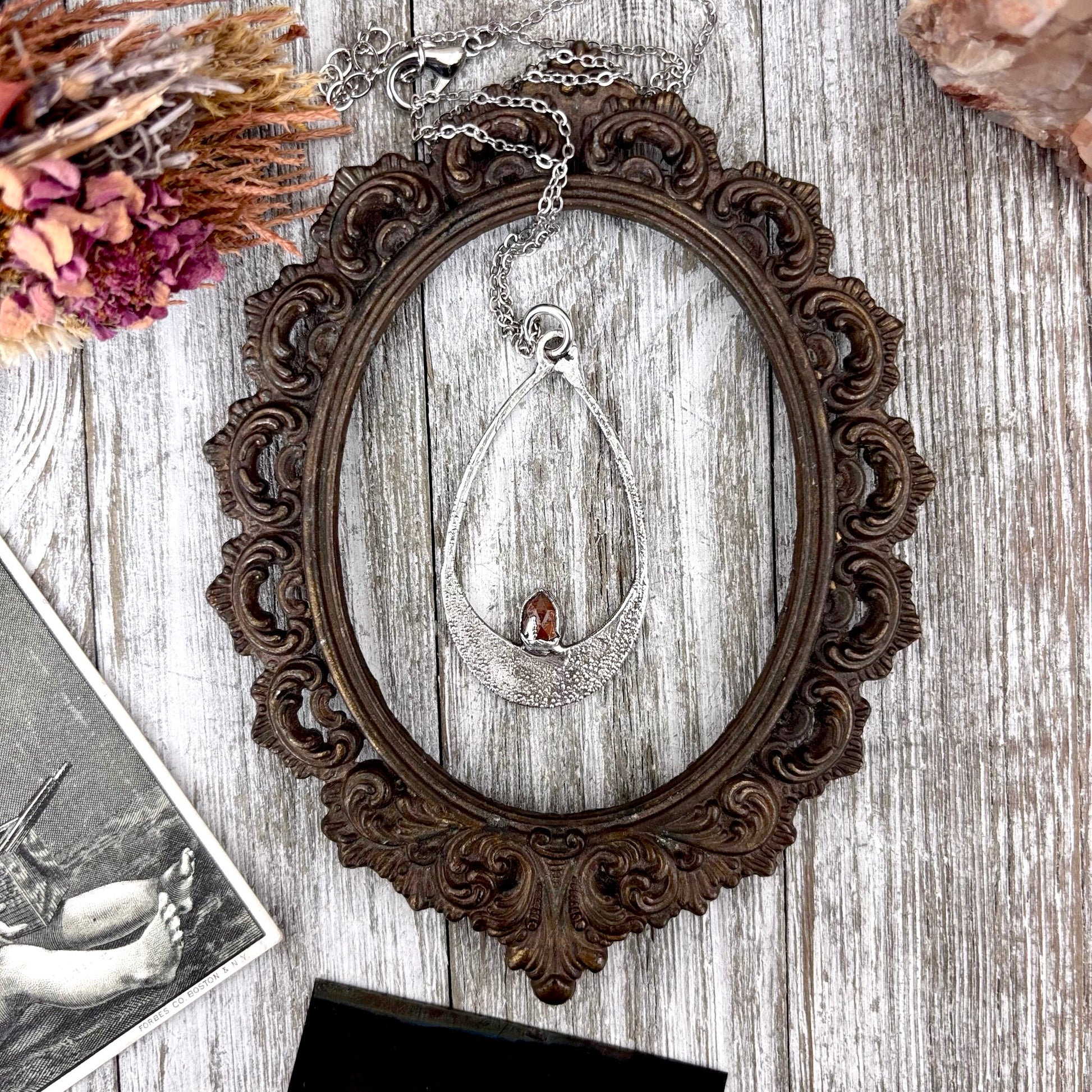 Orange Kyanite set in fine silver and given a vintage patina turning it into a unique crystal statement necklace. This handmade crystal necklace is perfect worn alone or layered with with other pieces.
