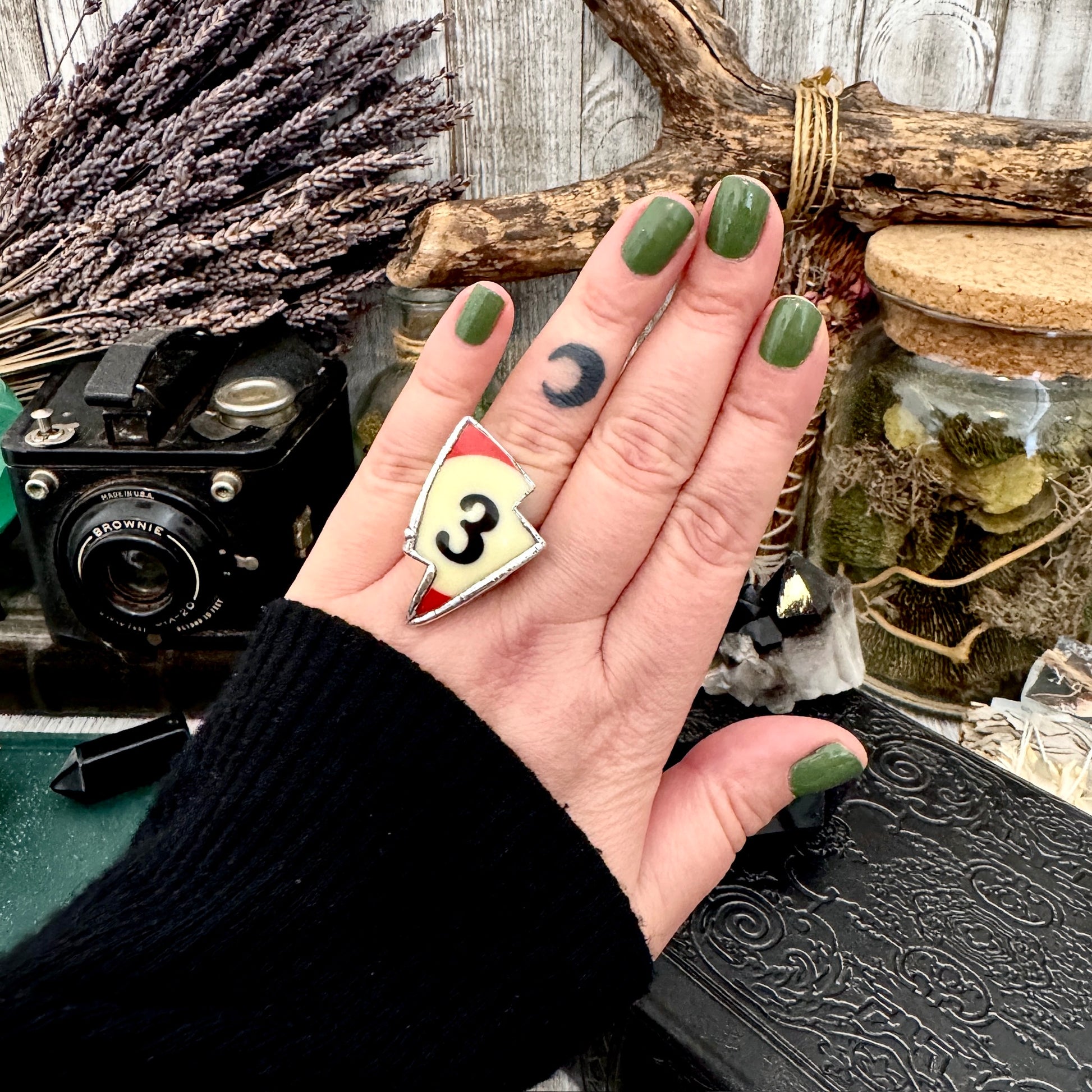 Playing Games - Lightning Bolt #3 Pool Ball Ring Fine Silver Size 8 / Foxlark Collection - One of a Kind