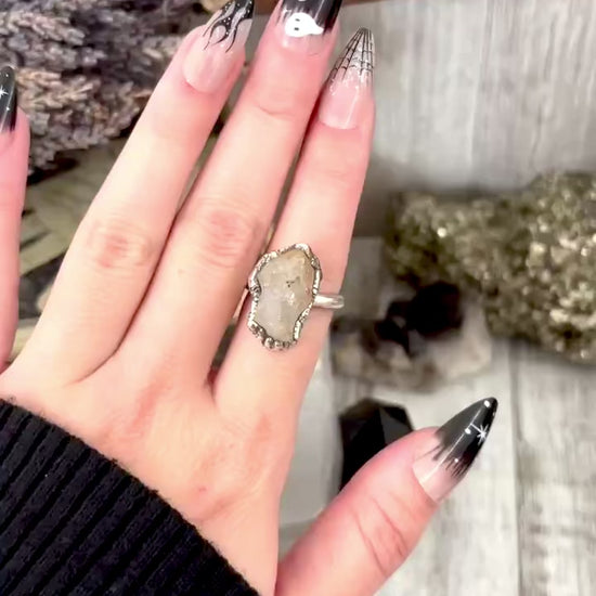 Get in touch with our contact page or you can always contact us on our FOXLARK Instagram www.instagram.com/foxlark or Facebook pages www.Facebook.com/foxlark , or through email foxlarkalchemy@gmail.comSlip a little magic onto your hand with this crystal fine silver ring. Sleek yet powerful, it radiates with energy, making it the perfect piece for anyone who loves a touch of power with their mysticism.