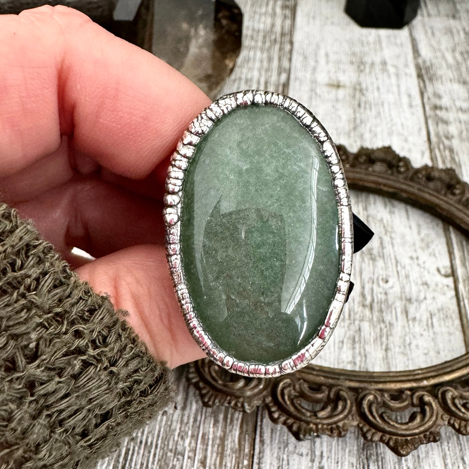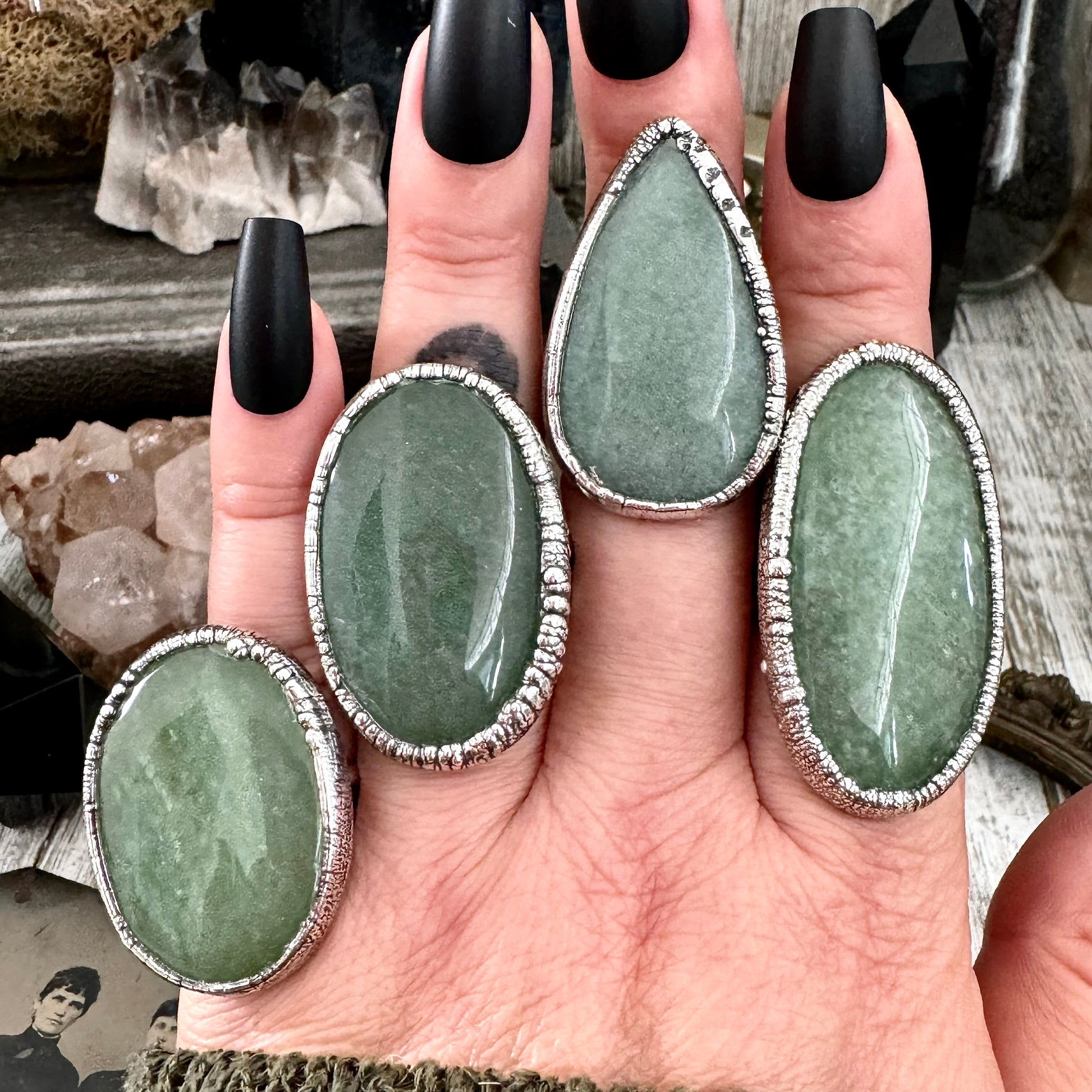 Get in touch with our contact page or you can always contact us on our FOXLARK Instagram www.instagram.com/foxlark or Facebook pages www.Facebook.com/foxlark , or through email foxlarkalchemy@gmail.comIntroducing the Green Aventurine Ring—handcrafted in fine silver for the risk-takers and rule-breakers. This stone’s all about manifesting luck and bold moves, so if you’re ready to bet on yourself, this is your winning ticket. Go big, stay bold, and let this ring do the talking.