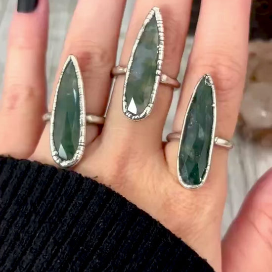 Get in touch with our contact page or you can always contact us on our FOXLARK Instagram www.instagram.com/foxlark or Facebook pages www.Facebook.com/foxlark , or through email foxlarkalchemy@gmail.comThis dainty Moss Agate ring, set in fine silver, channels earthy calm and quiet strength. With its natural green inclusions, Moss Agate supports grounding, growth, and emotional balance. Organic, serene, and effortlessly cool—perfect for those who feel most at home in nature and rooted in themselves.