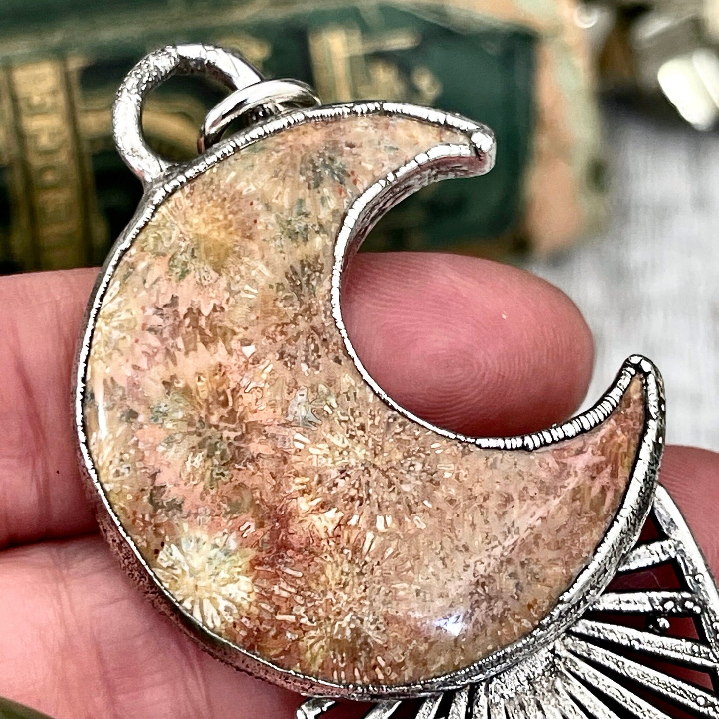 Get in touch with our contact page or you can always contact us on our FOXLARK Instagram www.instagram.com/foxlark or Facebook pages www.Facebook.com/foxlark , or through email foxlarkalchemy@gmail.comMoss & Moon Collection - Fossilized Coral Statement Necklace set in Fine Silver / One of a Kind - by Foxlark