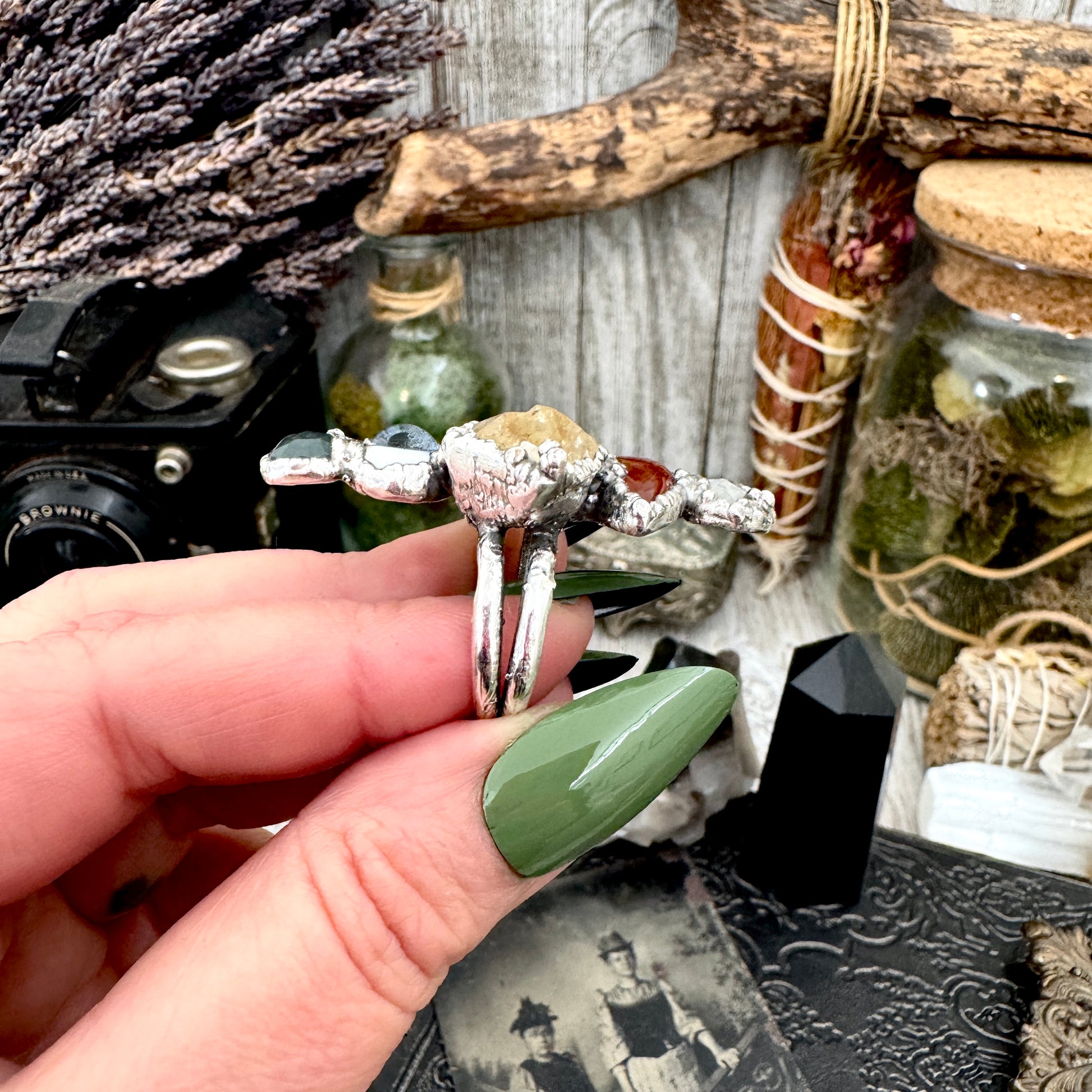 Stacked, layered, and a little excessive in the best way. These multi stone rings are built from hand selected stones set in fine silver, each one completely one of a kind. Made for hands that don’t do subtle.