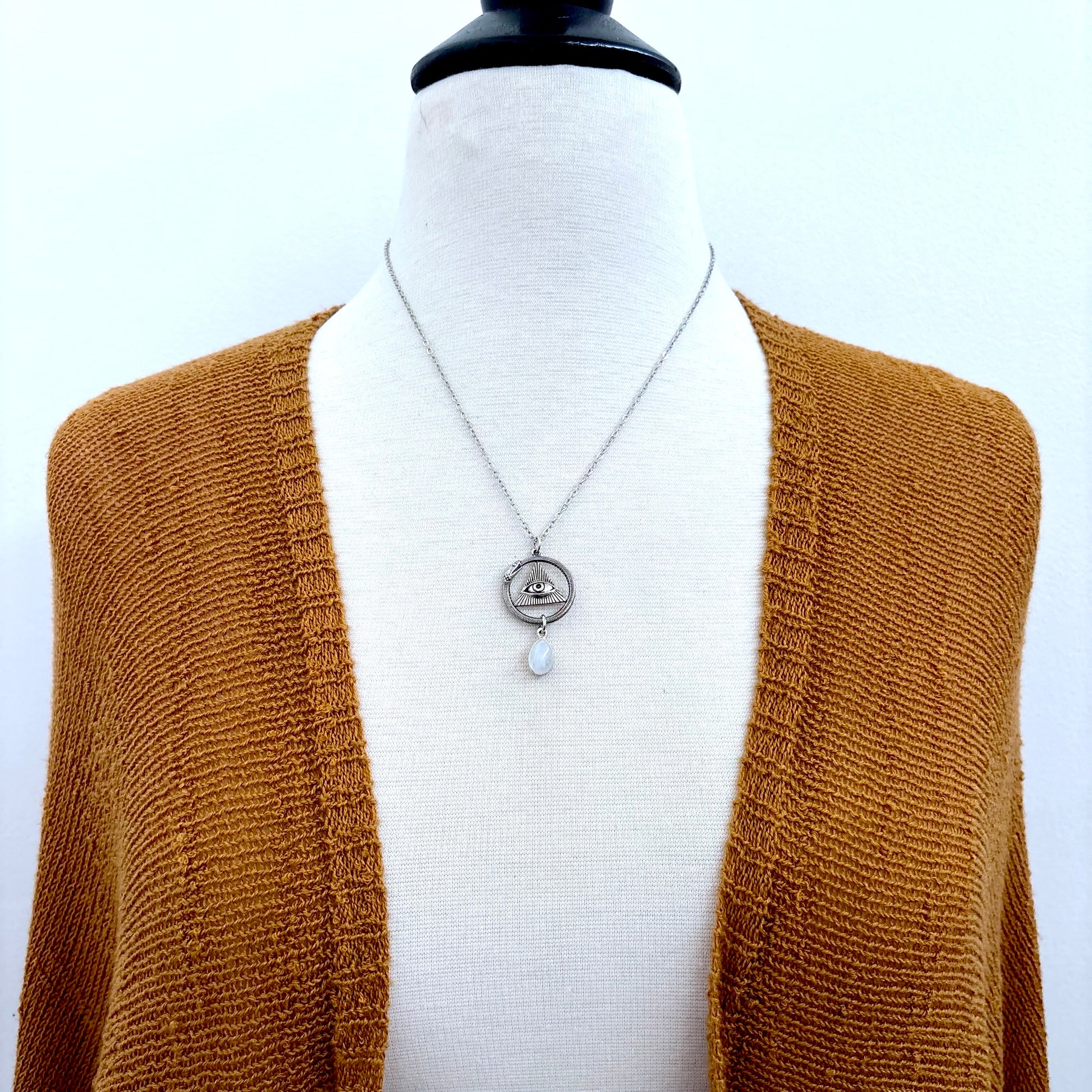 Ouroboros Evil Eye Rainbow Moonstone Talisman Necklace / Talisman Collection-Sterling Silver