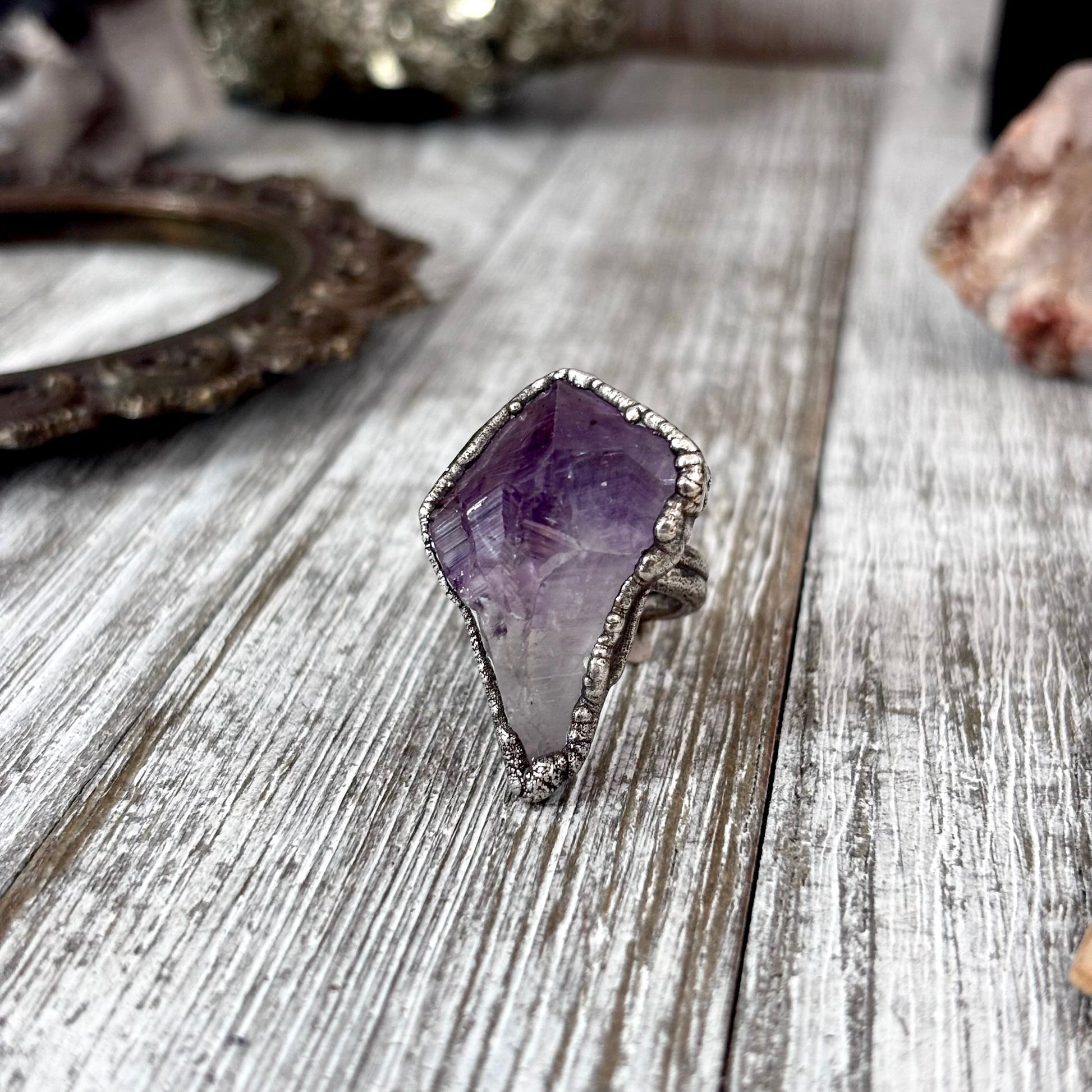Raw Amethyst Crystal Ring Fine Silver Size 6.5 / Foxlark Collection - One of a Kind