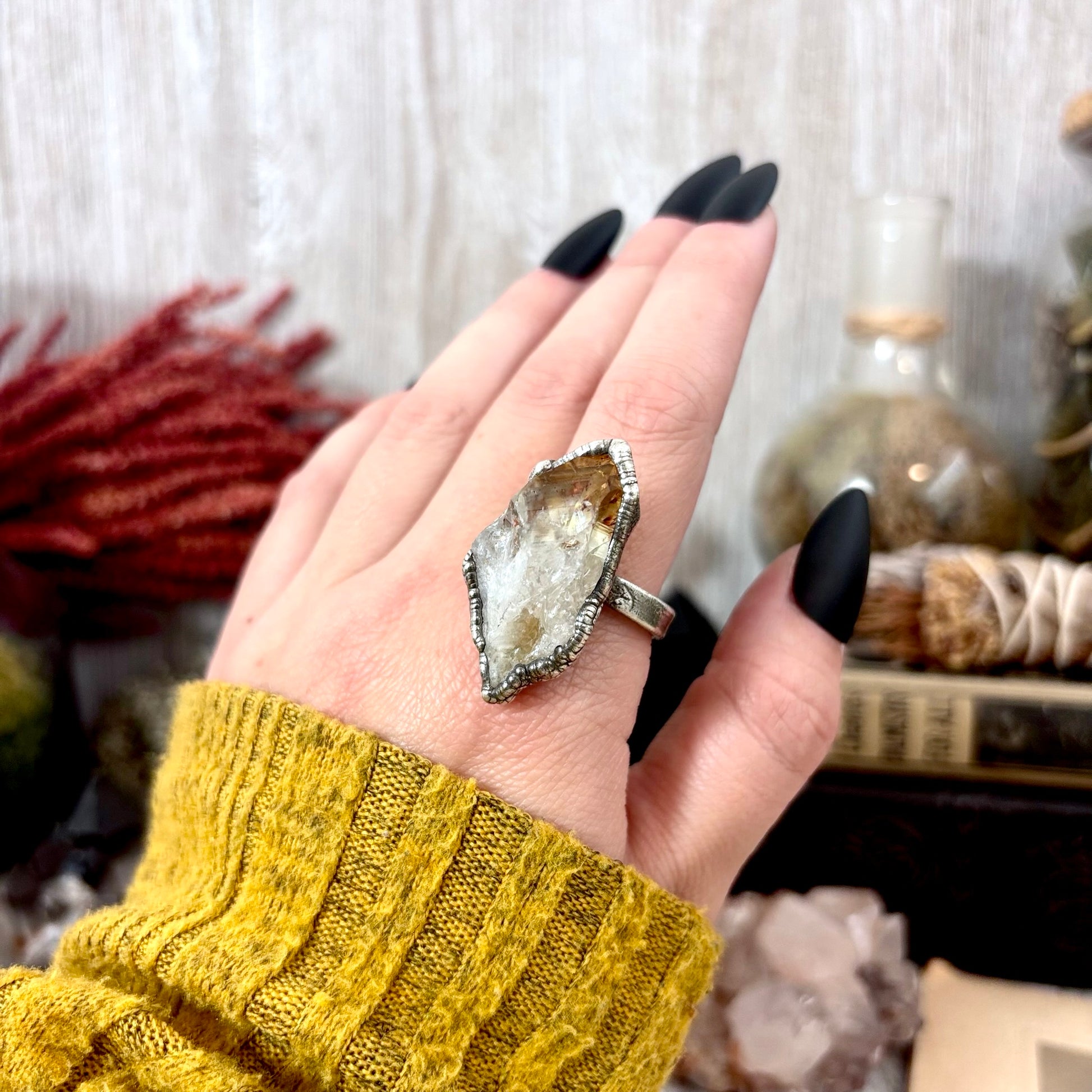 Raw Citrine Crystal Ring Fine Silver Size 9.5 / Foxlark Collection - One of a Kind