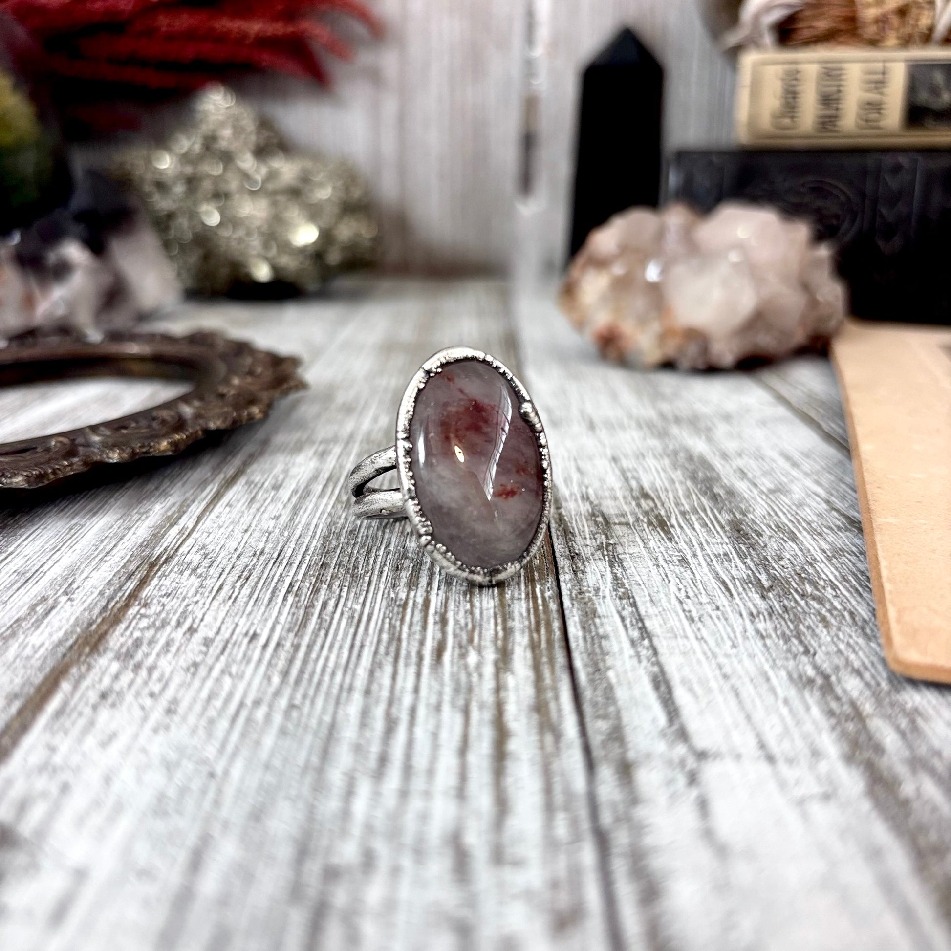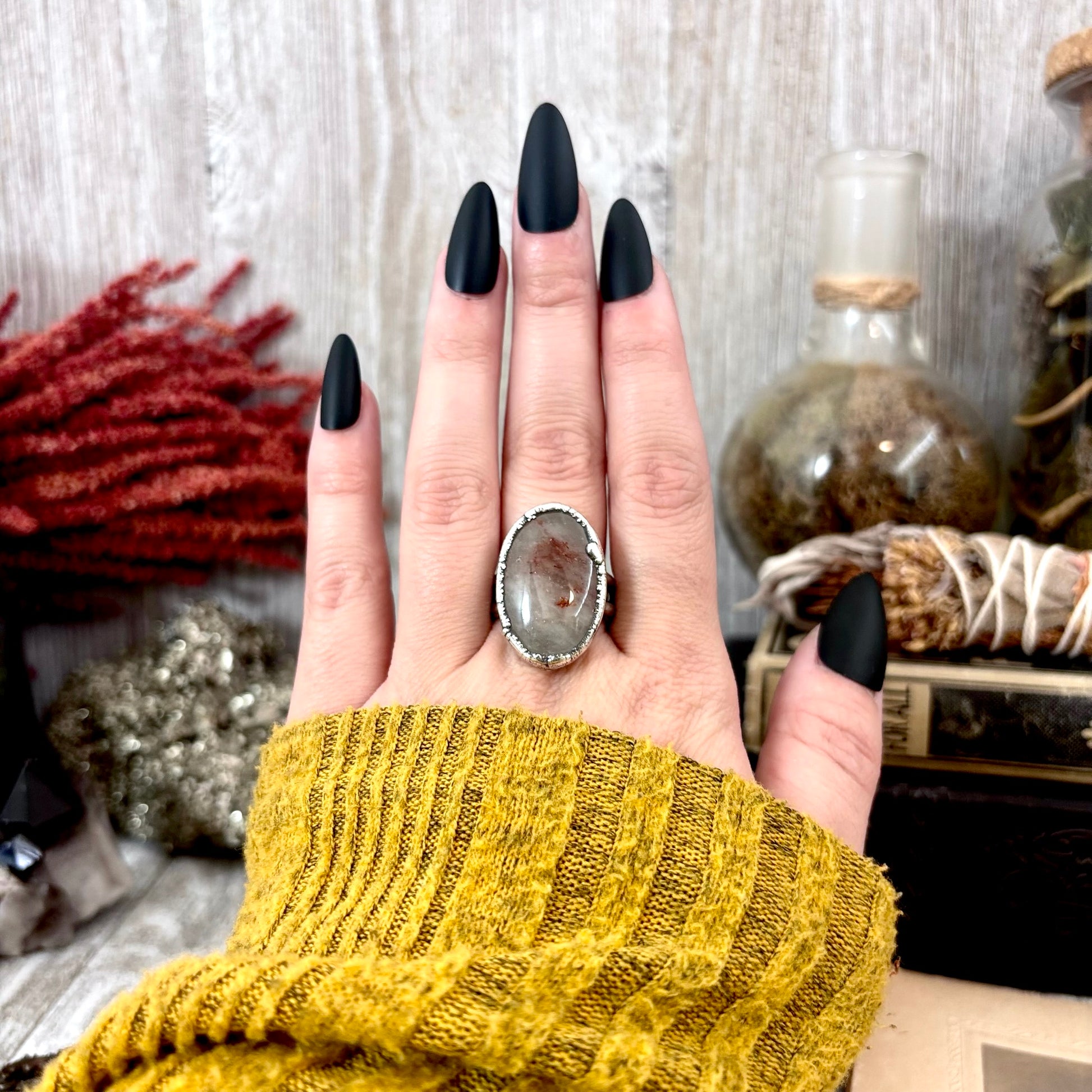 Get in touch with our contact page or you can always contact us on our FOXLARK Instagram www.instagram.com/foxlark or Facebook pages www.Facebook.com/foxlark , or through email foxlarkalchemy@gmail.comSlip a little magic onto your hand with this crystal fine silver ring. Sleek yet powerful, it radiates with energy, making it the perfect piece for anyone who loves a touch of power with their mysticism.