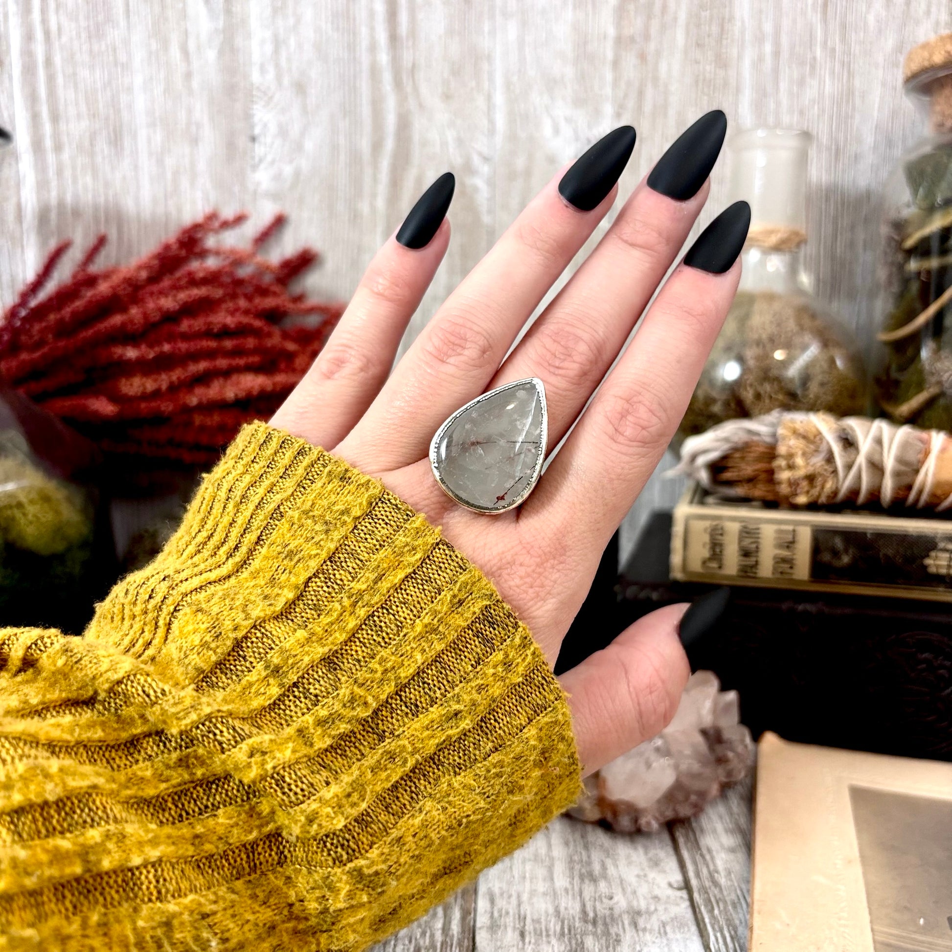 Rutilated Quartz Crystal Ring Fine Silver Size 8 / Foxlark Collection - One of a Kind