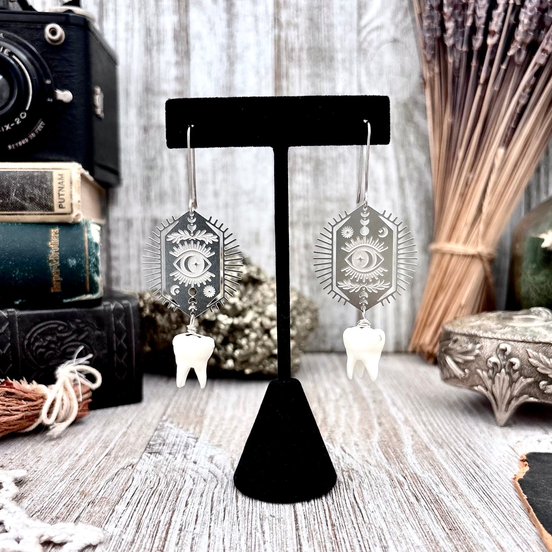 Stainless Steel All Seeing Eye Tooth Earrings / Long Dangle Earrings