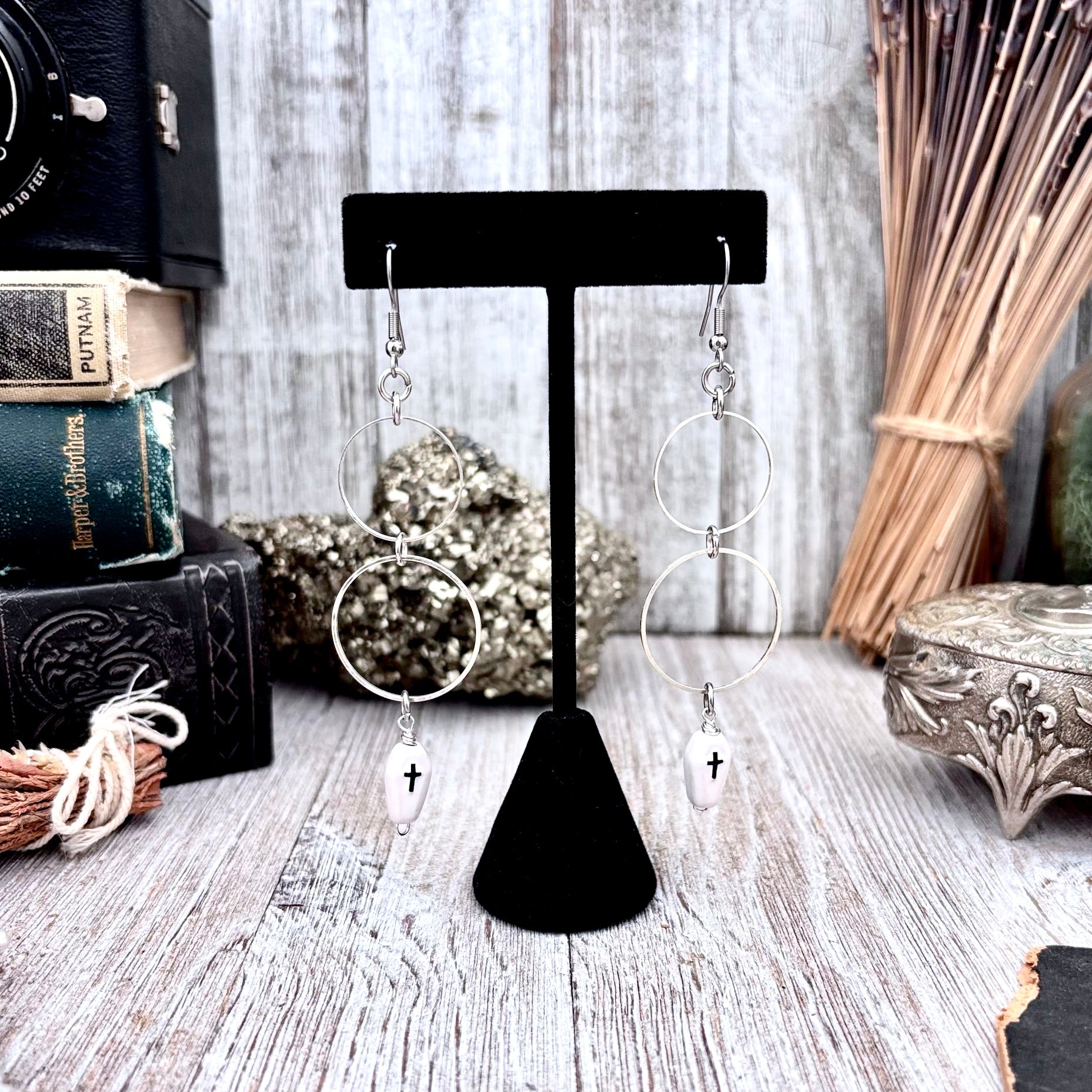 Stainless Steel Coffin Hoop Earrings / Long Dangle Earrings